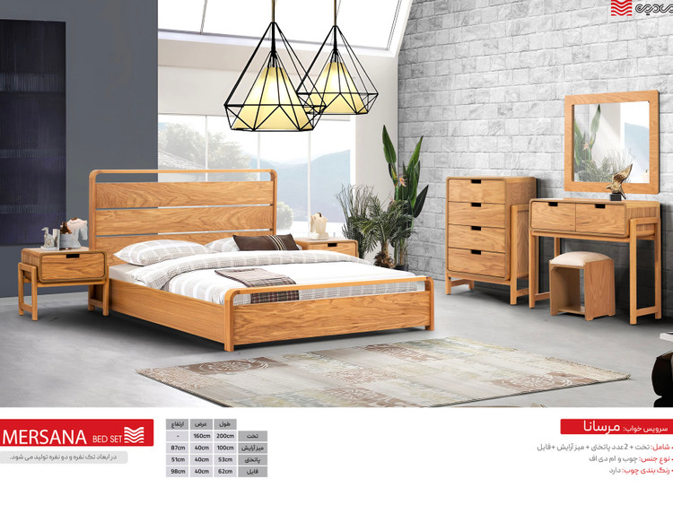 شامل : تخت ، میزآرایش ، 2 عدد پاتختی ، فایل
