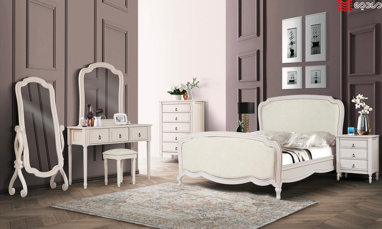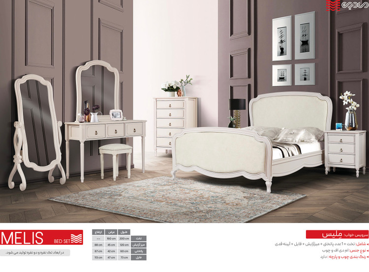 شامل : تخت ، میزآرایش ، 1 عدد پاتختی ، فایل ، ایینه قدی