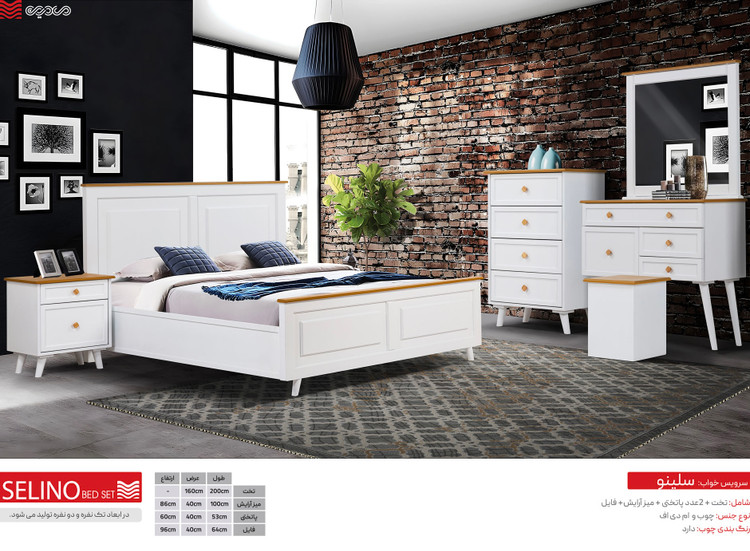 شامل : تخت ، میزآرایش ، 2 عدد پاتختی ، فایل