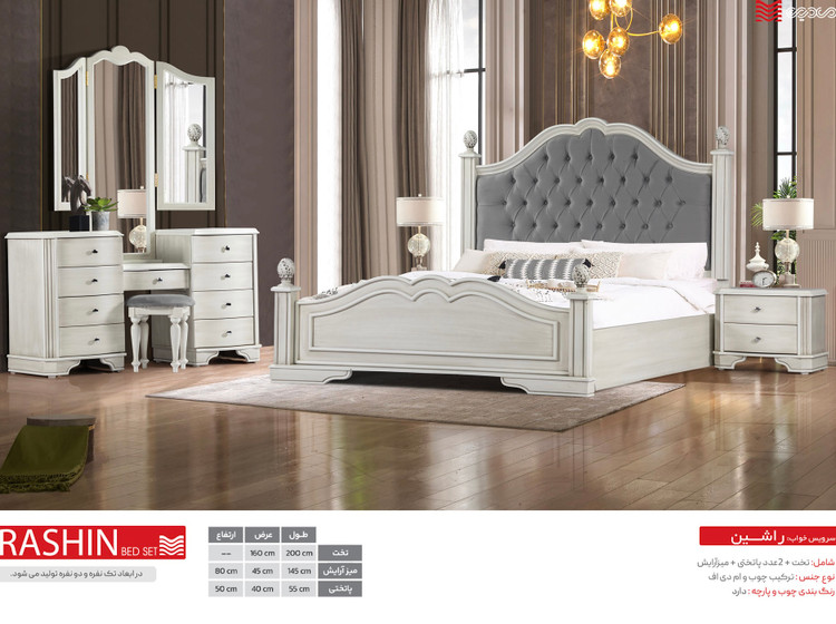 شامل : تخت ، میزآرایش ، 2 عدد پاتختی