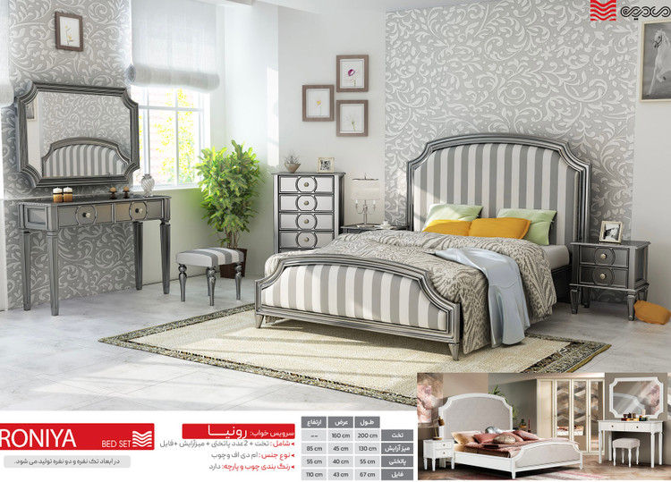 شامل : تخت ، میزآرایش ، 2 عدد پاتختی ، فایل