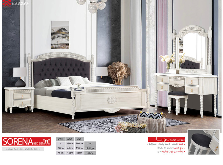 شامل : تخت ، میزآرایش ، 2 عدد پاتختی